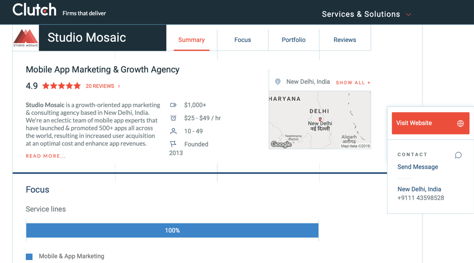 Our goal at Studio Mosaic is to grow our clients’ app businesses with our innovative marketing strategies which ensure success. We’re thrilled to announce that Clutch has recognized our endeavours and ranked us among the top B2B companies of 2019.