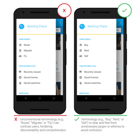 - Avoid using jargons – Using complicated language and unfamiliar terminology can often confuse the user. Using words which the user uses in day to day communication and screens which are common to most apps help the user become more comfortable with the app. Self-explanatory language enhances the user experience and allows them to interact with the app with more transparency.