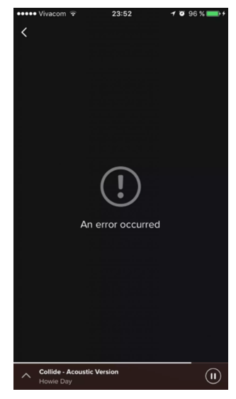 This error screen from Spotify is a dead end and doesn’t tell the user what to do.