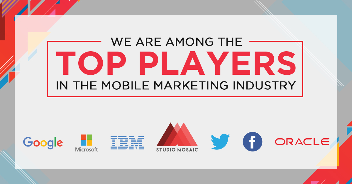 The Global Mobile Marketing Market Report 2019 has recognized Studio Mosaic as one of the ‘Top 29 Players’ in the mobile marketing industry worldwide! It is a proud moment for us to share this title with industry stalwarts like – Google, Facebook, Microsoft, Oracle, Twitter, and IBM. We are extremely humbled by this honour.